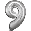 Javoli Silver óriás szám fólia lufi 9-es, 83x58 cm