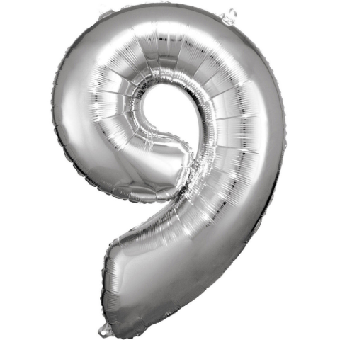 Javoli Silver óriás szám fólia lufi 9-es, 83x58 cm party kellék 1 kép