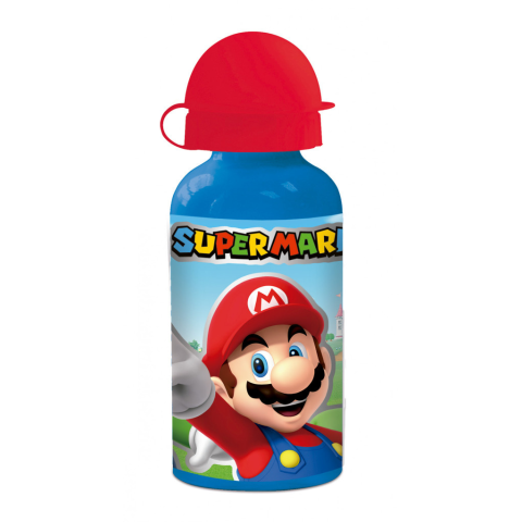 Super Mario alumínium kulacs ivókupakkal 400 ml Flakon védőkupakkal és porvédősapkával. Anyaga: Alumínium, műanyag. Űrtartalom: 400 ml.