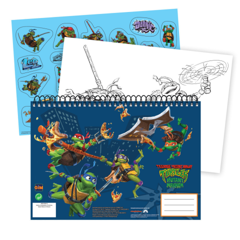 Ninja Turtles, Tini Nindzsa Teknőcök spirál vázlatfüzet, 40 lapos 1 ív matricával és 3 db színezhető képpel! Méret: A/4 (23x33cm)