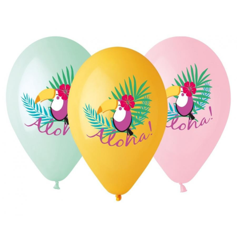 Toucan Aloha, Tukán léggömb, lufi 5 db-os Anyaga: latex/gumiMérete: 13 inch (33 cm) A lufi tartó pálca + csésze külön megvásárolható áruházunkban.