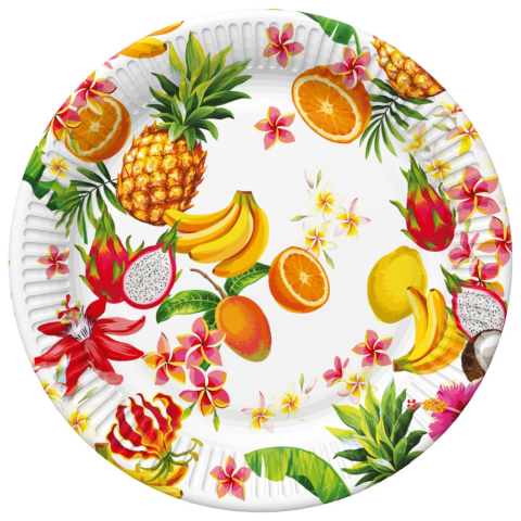 Tropical, Trópusok papírtányér Méret: 22,7 cm Anyaga: papír 8 db tányér/csomag