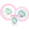 Unicorn, Unikornis Range étkészlet, micro műanyag szett-BPA Mentes-Származási ország: Spanyolország-A termék környezetbarát, újrahasznosítható anyagból készült a Föld védelmében.Csomagolás nélkül!A készlet tartalma:1 db mélytálka (Mikrózható műanyag)1 db lapostányér (Mikrózható műanyag)1 db pohár 260 ml (600 watton mikrózható max. 2 percig)A termék anyaga: műanyag.