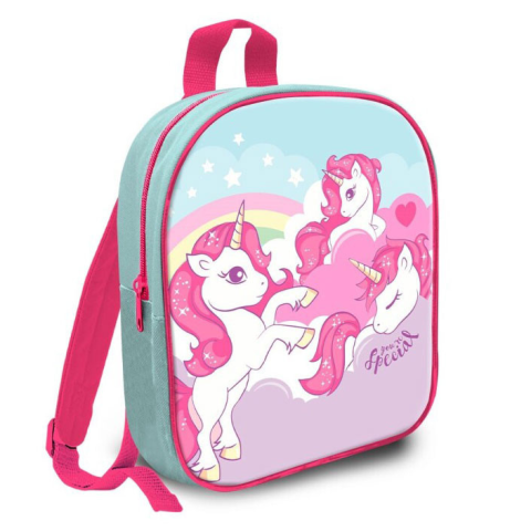 Unicorn, Unikornis Hátizsák táska II. osztály Hibás II. osztályú termék!A terméken kisebb színhiba látható! Garancia és reklamáció a termékre nem érvényesíthető! Mérete: 29 cm Anyaga: PVC + poliészter Csomagolva PE tasakban