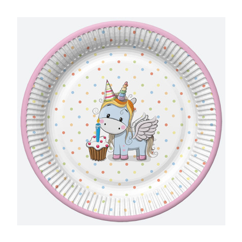Unicorn, Unikornis papírtányér Méret: 22,7 cm Anyaga: papír 8 db tányér/csomag