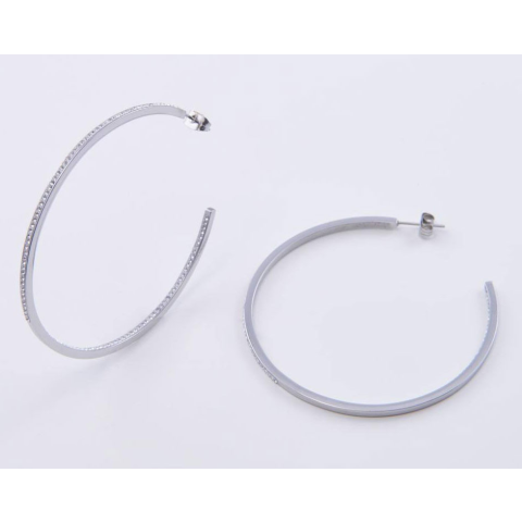 Victoria Ezüst színű fehér köves karika fülbevaló Ezüst színű. Anyaga: rozsdamentes acél 1 pár fülbevaló