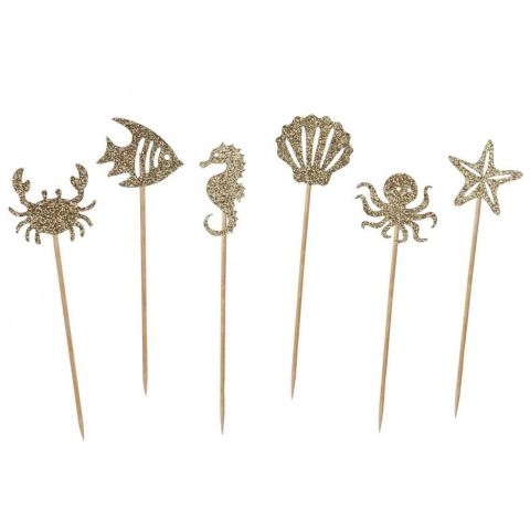 Vízivilág torta dekorációs szett 6 db-osCsillámos!Anyaga: papírMéret: 10 cm
