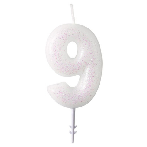 White, Fehér csillámos gyertya 9-es 6,5 cm Mérete: 6,5 cm