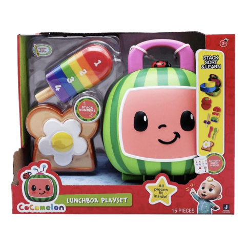 Az uzsonnás doboz készlet mintáját a CoComelon sorozat ihlette. A készlet mindenféle finom ebédidős játékételt és kiegészítőt tartalmaz, amelyekkel gyermeke játszhat és tanulhat. A CoComelon alakú játék uszonnás dobozhoz tartozik egy 3 részes tálca, egy villa, egy kanál és különböző játékételek, például pirítós tojással, almával és nyalókával. Ez egy tökéletes játék az óvodásoknak, hogy megtanulják a számolást és a különböző élelmiszercsopo