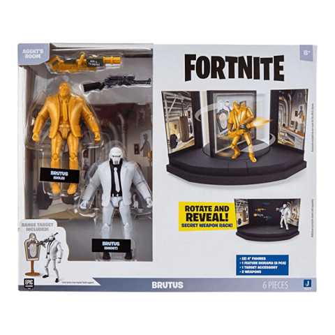 Ez a Fortnite Brutus Agent’s Room 2 figuracsomag 2 db 10 cm-es akciófigurát tartalmazz! Mindkét ábra rendkívül részletes és nagyon artikulált, több mint 25 artikulációs ponttal. Nyomja meg a gombot a padlón, hogy aktiválja a titkos átjárót, váltson stílust, és felfedje a rejtett hátsó fali tartozéktartót! Rejtsd el és tárold a fegyvereidet, a Back Blinget és a Betakarítási eszközöket a játékkészlet hátsó falán, hogy készen állj a harcra!