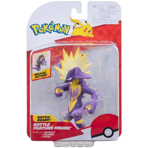 Jazwares Pokémon figura - Toxtricity 11 cm, PKW3419Pokémon Toxtricity Battle Feature akciófigura (kb. 11cm) Gyártó Jazwares / The Pokémon Company International EAN 191726508939 Modellszám PKW3419 (Wave18) Méret kb. 1111,5cm magas Anyag Strapabíró PVC, mozgatható végtagokkal Csomag mérete kb. 17,911,46,4cm Ajánlott kor 4 éves kortól Funkció Harci figura az akciógomb megnyomásával Toxtricity végrehajtja elektromos támadását , így a figura nemcsak látványos, hanem val