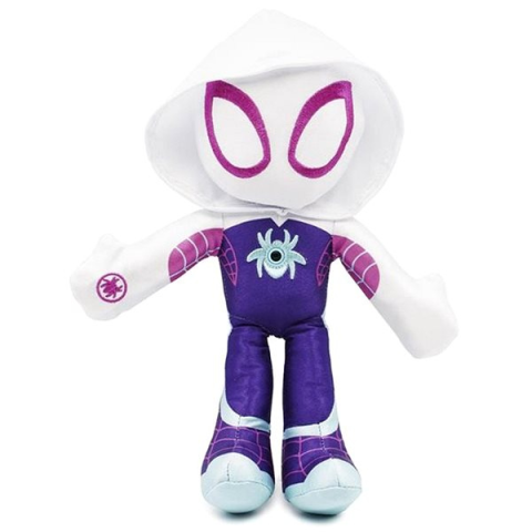 Plüss - spidey, világító, magassága 23 cm, ajánlott 3 éves kortól, Pókember tematika, 3 LR44 elem (nincs mellékelve) A Jazwares plüssfigura Ghost-Spider formájában örömet szerez a 3 éves kortól kezdődő gyerekeknek. Minőségi plüssből készült, aminek köszönhetőenpuha tapintású. A lila színt fehér, rózsaszín és kék rés