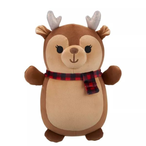 1 kép Jazwares Squishmallows Hugmee: Darla, a barna rénszarvas kockás sállal - 25 cm