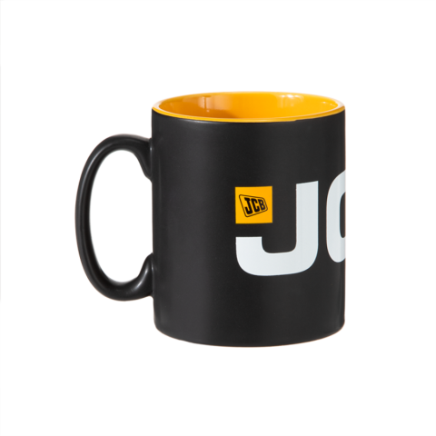 Élvezze a reggeli kávét vagy teát ebben a fekete bögrében, amely belseje élénk sárga színű és a JCB logójával van ellátva.
