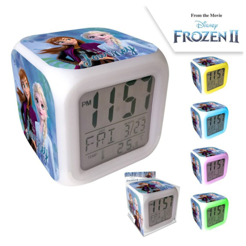 Disney Jégvarázs Journey digitális ébresztőóra Disney Frozen, Disney Jégvarázs Journey digitális ébresztőóra Méret: 8x8 cm Több színben világít! A szín gombnyomással változtatható. 3 AAA elemmel működik, amely nem tartozék! 3 éves kor alatt nem ajá