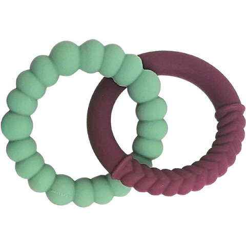Baba rágóka - szilikon, mosható, karika alakú, babakocsiban használatos, lila és zöld szín, 8 cm átmérő, 6 hónapos kortól ajánlott A remek Jellystone Designs rágóka ideális választás fogzáskor, mert csökkentheti a fájdalmat, mert ha harapdálja a baba, egyben masszírozza az ínyét is. A baba megtanulja megfogni, egyik kezéből a más
