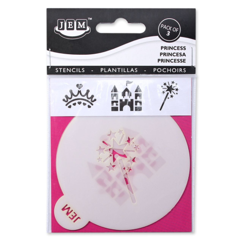 JEM stencil, hercegnő, 3 db A JEM klasszikus sablonkészlet olyan klasszikus mintákat tartalmaz, mint hercegnős motívumok. Ez a készlet egész évben használható, és kiválóan alkalmas házi készítésű finomságok díszítésére. A JEM sablonnal sokféleképpen dí
