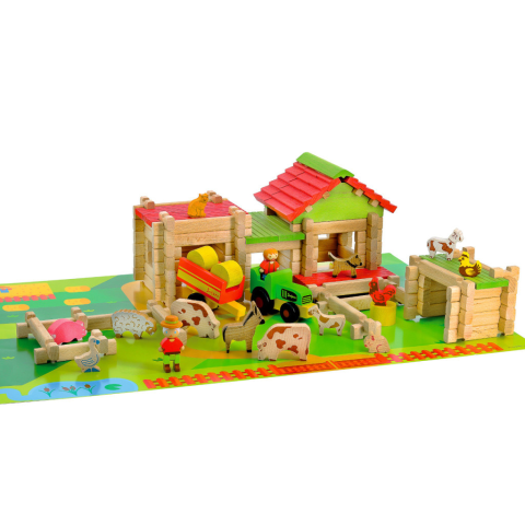 JEUJURA fa építőkészlet első nagy farmom traktorral, pótkocsival 130 db-os barkácsolás, építés 1 kép