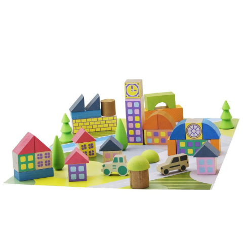 1 kép JEUJURA fa építőkészlet falu 40 db-os