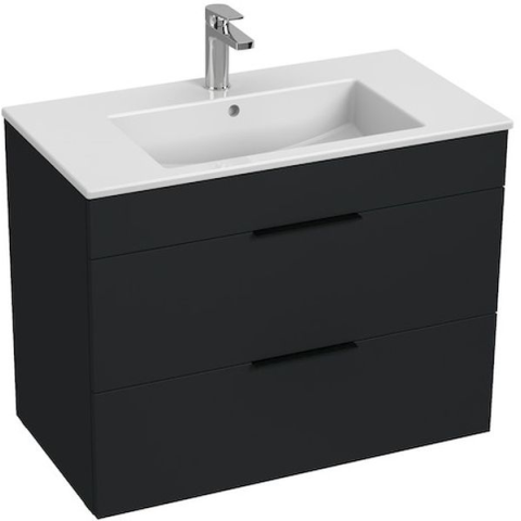 A csaptelep nem tartozék! 2 fiókos Fekete fogantyúval 1 csaplyukas mosdó