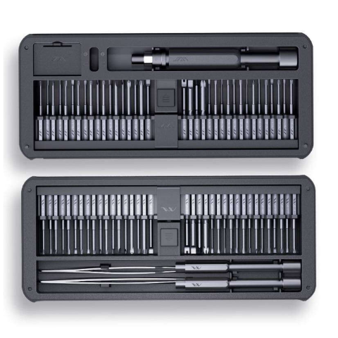 In the set you will find up to 72 tips, an adjustable handle and its 2 smaller versions, 2 types of tweezers and a functional case with magnetiser/demagnetiser and a container