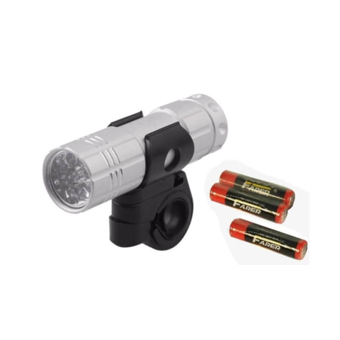 Jing Yi 9 LED első lámpa, elemekkel, ezüst színű