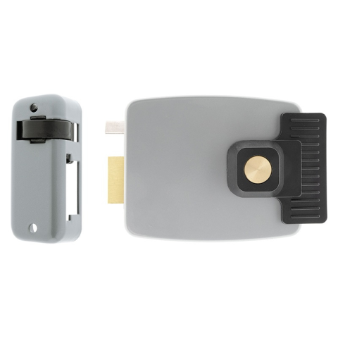 JIS Elektromos zár, balos, felületre szerelhető, gombos, állandó nyitás vagy zárás állapot, fém anyag, szürke 127x105mmMéretek: 102,9 X 125,35 X 34,5Feszültség: 12V ACFogyasztás: 3AÁllítható retesz: NoMegfordítható: NemBeépítési pozíció: VízszintesHenger hossza 50 és 80 mm közöttFémburkolat: IgenEnglish: