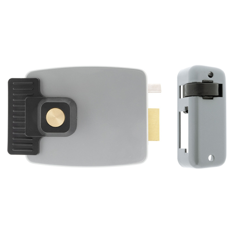 JIS Elektromos zár, jobbos, felületre szerelhető, gombos, állandó nyitás vagy zárás állapot, fém anyag, szürke 127x105mmMéretek: 102,9 X 125,35 X 34,5Feszültség: 12V ACFogyasztás: 3AÁllítható retesz: NoMegfordítható: NemBeépítési pozíció: VízszintesHenger hossza 50 és 80 mm közöttFémburkolat: IgenEnglish:
