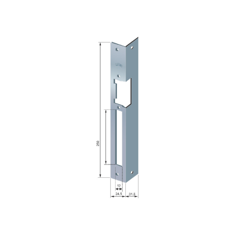 JIS Profil, L alakú, 250,5x24,5 és 31,5mm a belógás, 12x102mm lyukkal, anyaga acél szürke színben