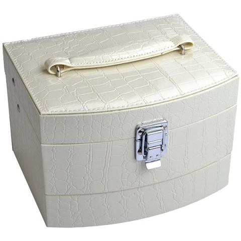 Ékszeres doboz - szintetikus bőr, 3 szintes, 7 rekesz, mérete 18,8 × 15 × 13 cm (Ma×Sz×Mé), fehér kivitel Ez a minőségi tervezésű luxus ékszerdoboz biztonságosan megőrzi az összes értéktárgyát! Mesterséges kígyóbőrben öltözött, az elegáns, krémes szín pedig különleges megjelenést kölcsönöz a megjelenésnek