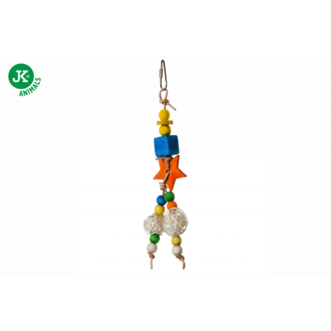 1 kép JK | Fa, rattan madárjáték luffa szivaccsal - 18 cm