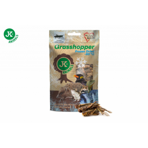 A JK Fagyasztva Szárított Szöcske 80 g (Acrida cinerea) kiváló minőségű, természetes táplálék hüllők és rovarevő háziállatok számára. Gazdag fehérjében és esszenciális aminosavakban, a gyorsfagyasztás és szárítás révén megőrzi frissességét és tápértékét.
