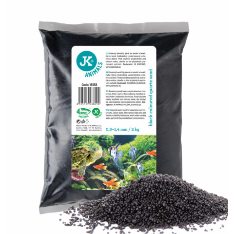 A JK kvarchomok fekete 0,3–1,4 mm szemcseméretű, 2 kg-os természetes aljzat, amely elegáns, kontrasztos megjelenést biztosít akváriumodnak. Nem oldódik, nem színezi a vizet, és teljesen biztonságos minden vízi élőlény számára. Ideális választás modern, le