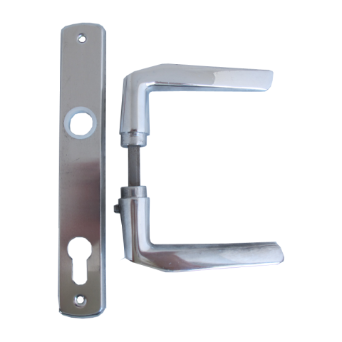 Polírozott ajtókilincs (CZ 410) + ajtócím ezüst színben, alumíniumból, 90 mm.