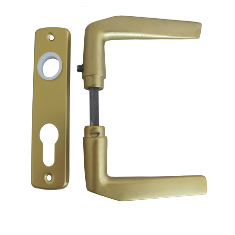 Eloxált ajtókilincs (CZ 410) + ajtócím lővér arany színben, alumíniumból, 55 mm.