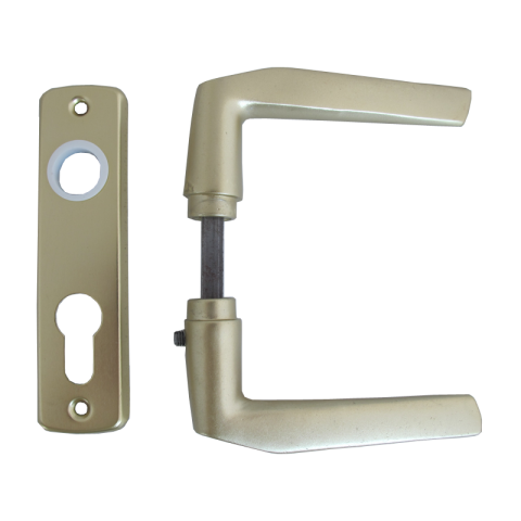 Eloxált ajtókilincs (CZ 410) + ajtócím lővér pezsgő színben, alumíniumból, 55 mm.