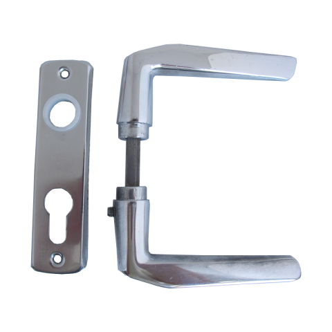 Polírozott ajtókilincs (CZ 410) + ajtócím lővér ezüst színben, alumíniumból, 55 mm.