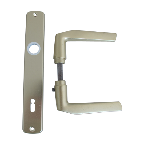 Eloxált ajtókilincs (NZ 410) + ajtócím pezsgő színben, alumíniumból, 90 mm.