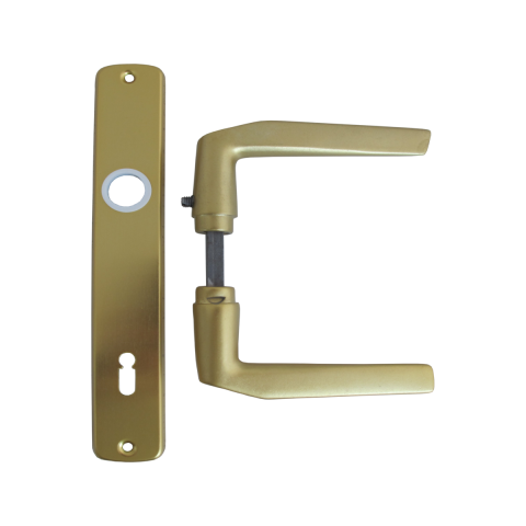 Eloxált ajtókilincs (NZ 410) + ajtócím arany színben, alumíniumból, 90 mm.