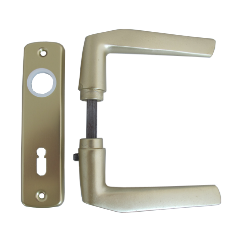 Eloxált ajtókilincs (NZ 410) + ajtócím lővér pezsgő színben, alumíniumból, 55 mm.