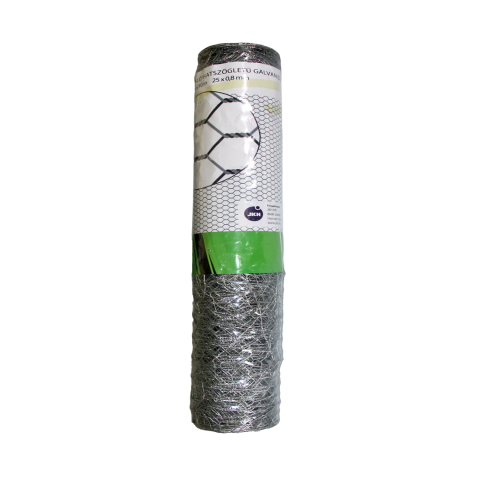 Horganyzott hatszögletű háló fehér színben. 10x0,5 méter, 0,5mm anyagvastagú; lyukméret/szögek közti csúcstávolság: 25 mm.