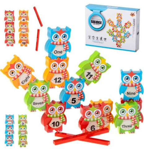 Fantasztikus oktató játék aranyos baglyokkal. A játék célja, hogy baglyokat helyezzenek egymásra, hogy tornyot hozzanak létre. A rejtvény fejleszti a kézi készségeket és a logikus gondolkodást. Anyaga: műanyag. Elemek száma: 16. Baglyok: 5,5x7x2cm.