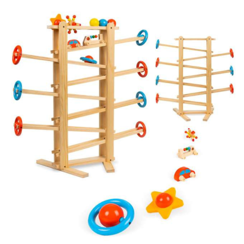 Fantasztikus labdapálya, amely órákon át lefoglalja babáját! A játék kezelése rendkívül egyszerű, de milyen megnyerő! A gyerekek örömmel figyelik a mozgó elemeket, és rácsodálkoznak a golyókat mozgásra késztető varázslatra. Kiváló minőségű fából készü