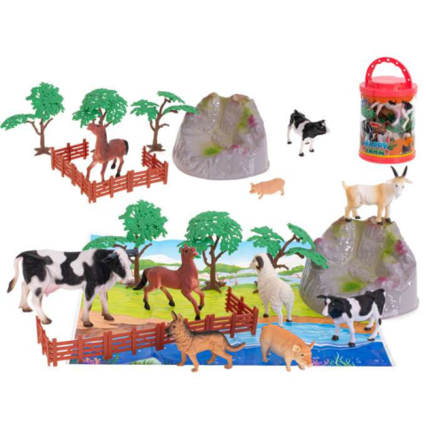 KÁLLALATOKTATÁSI SZABÁLYOK 7 DB + Szőnyeg és KIEGÉSZÍTŐK A 7 különböző állatot ábrázoló egyedi figurakészlet egyenesen a farmra viszi a fiatal természetbarátot. A készlet tartalmaz egy szőnyeget, melynek köszönhetően fantasztikus, vidéki állatok életé