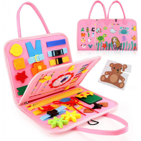 1 kép JM Interaktív Érzékszervi Játék, Textil Busy Board Rózsaszín Táska Típusú Könyv