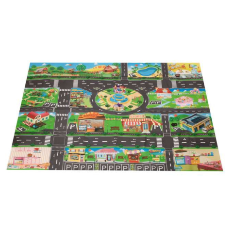 VÍZÁLLÓ Szőnyeg GYERMEKEKNEK Nagyméretű vízálló gyerekszőnyeg városi mintával. Olajvászonra emlékeztető műanyagból készült. A szőnyeg nagyon vékony és könnyű, így utazáskor könnyedén magaddal viheted. Összecsukva kis helyet foglal. A készlet külön