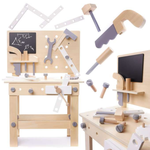 MŰHELY + SZERSZÁM KÉSZLET Minden ezermesternek szüksége van egy szerszámüzletre. Egy gyönyörű, nagy, fából készült készlet minden kis barkácsolásrajongó álma lesz. Csavarhúzók, kalapácsok, csavarok, fogaslécek – ezek mind szükségesek egy professzioná