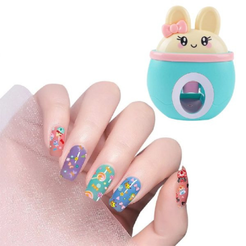 1 kép JM Nyuszis köröm díszítő gép kislányoknak körömlakkokkal és csillámokkal