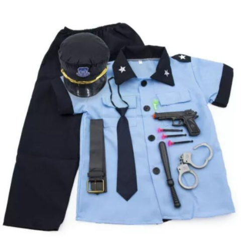Főbb jellemzők: Anyaga: 100% poliészret Tartozékok: játék fegyver, töltény, bilincs, gumibot M-es méret 115-125 cm magassághoz ajánlott Vállszélesség: 33 cm Ujjhossz: 15 cm Ing hossz: 50 cm Nadrág hossza: 45 cm Derékbőség: 54 cm