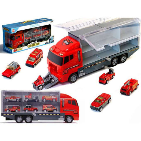 Egy nagy teherautó , amely lehetővé teszi a kisméretű autók biztonságos szállítását hozzáerősítve. Tűz? Veszélyes baleset? Vagy egy macska beszorult a fába? A bátor tűzoltók úton vannak! Minden típusú mentési művelethez vannak járműveik A kis féma